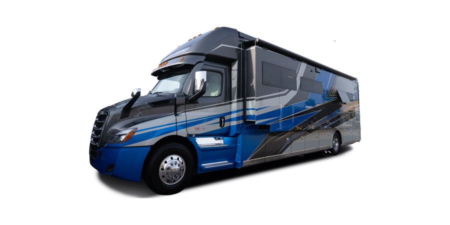 Entegra Coach, a leading manufacturer of luxury motorhomes, has released the Centurion, an all-new highly anticipated Diesel Super C model on the advanced Freightliner Cascadia Chassis. The Centurion provides the best of both worlds with the premium finishes and comfort of a motorhome, coupled with the drivability of a Class C RV. Power is provided by a robust 525 Horsepower Detroit engine, coupled with a safety assurance package and 360 degree camera system for worry free driving. With an impressive 20,000-pound towing capacity, the Centurion gives you the strength to bring along whatever your adventure requires. Whether you’re headed to the track, driving cross-country or camping in the wilderness the Centurion is the best choice for those who are well past roughing it and want to enjoy an elevated experience.