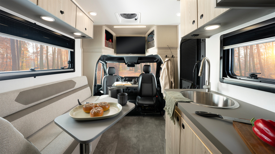 Available in two distinct chassis options, the Condor lets you match your motorhome to your lifestyle. The Condor 22T is built on the Ford® Transit 350HD AWD chassis, powered by a 3.5L EcoBoost® V6 gas engine delivering 310 horsepower and 400 lb-ft of torque. It's a high-performance gas-powered platform that blends strength and efficiency. For those seeking a more refined, diesel-driven experience, the Condor 23S rides on the Mercedes-Benz® Sprinter 3500 AWD chassis—offering enhanced handling, extended length, and elevated ground clearance for next-level performance both on and off the pavement.