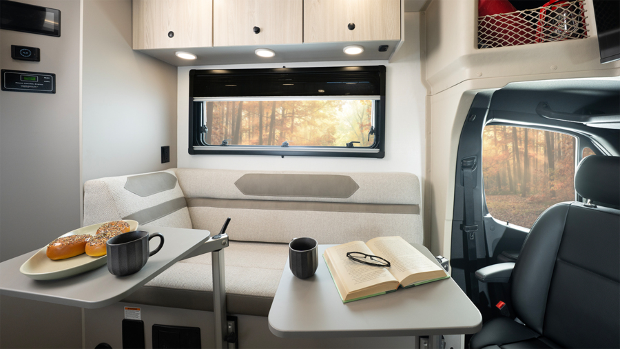 Every Condor is built to go the distance. With 2-inch thick walls, dual-pane acrylic windows, heated and enclosed holding tanks, and superior insulation, you’re equipped for extended-season travel. Inside, smart design meets refined simplicity: twin beds in the rear convert into a spacious sleeping area, while a cozy lounge behind the captain’s chairs invites you to relax or plan the next leg of your journey. A thoughtfully designed wet bath and a fully equipped kitchen—complete with refrigerator, stainless steel sink, and portable induction cooktop—ensure you’re never without the essentials.
