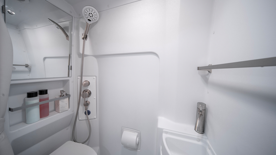 For year-round comfort, the Truma Combi water and air heating system offers quiet, efficient warmth powered by propane, electricity, or both—perfect for off-grid stays. Optional lithium power eliminates the need for a traditional generator, providing silent, clean energy wherever you roam. Paired with the Aqua View® SHOWERMI$ER™ system, which recycles cold water until it reaches the ideal temperature, the Ethos is engineered for sustainability as much as comfort.