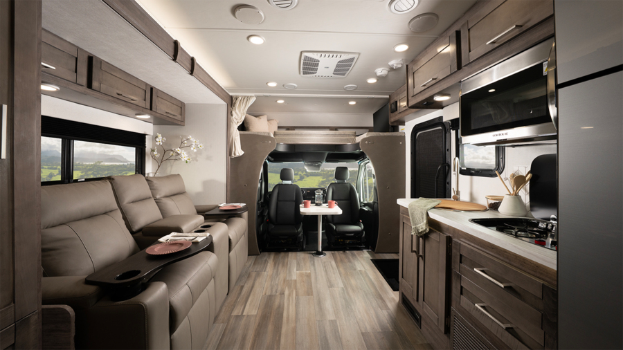 | Customer Value Package (Mandatory) | One-piece seamless fiberglass front cap; Frameless windows; Heated holding tanks; Heated, remote-controlled side-view mirrors; Electric patio awning with LED lights; Backup and side-view cameras; Keyless cab entry; 7 in. integrated Mercedes-Benz® MBUX infotainment center with Apple CarPlay® and Android Auto™; Swivel driver and passenger seats |